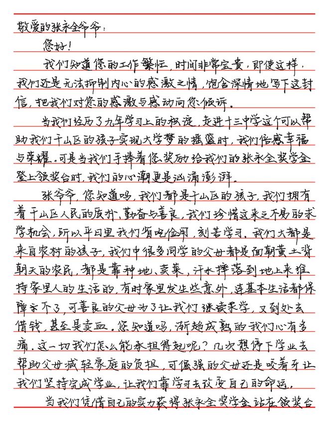 鞍山市第十三中學(xué)受資助學(xué)生的來信