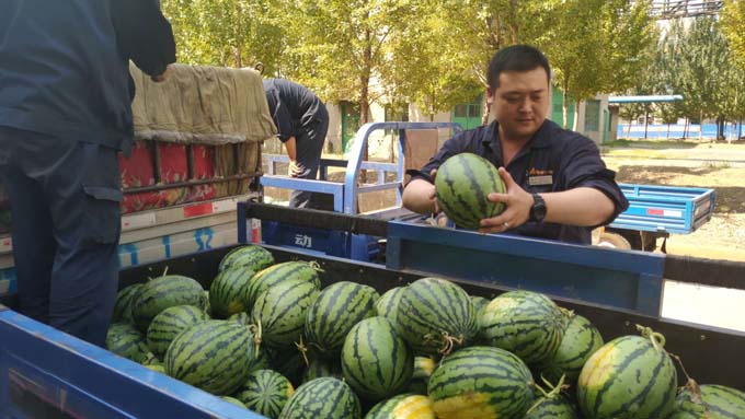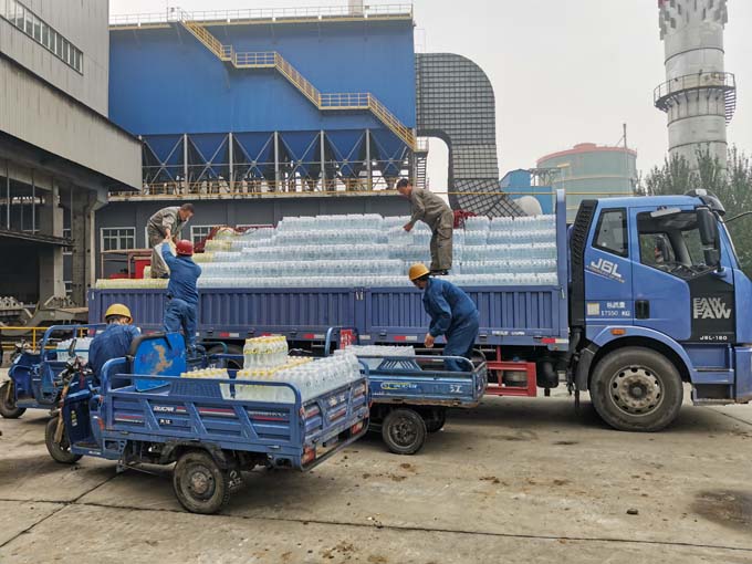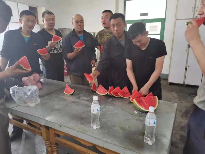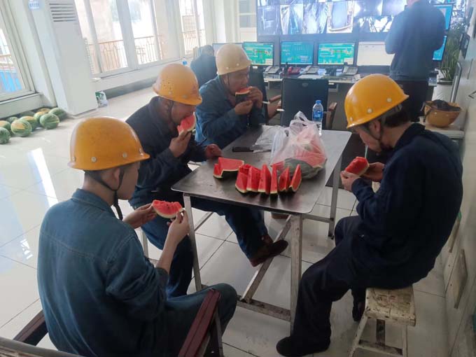 廠房里,公司工會為奮戰(zhàn)在一線的職工發(fā)放清涼解署的鹽汽氣和西瓜,給大家送去一份夏日的清涼。工會主席叮囑職工要注意生產(chǎn)安全,合理安排作息時間,做好防暑降溫工作。