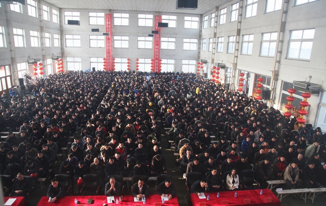 2月16日農(nóng)歷初七,是春節(jié)后第一個(gè)工作日,公司1500名員工(不包括在崗員工)歡聚一堂,在網(wǎng)球場召開每年一度的全體職工大會(huì)。