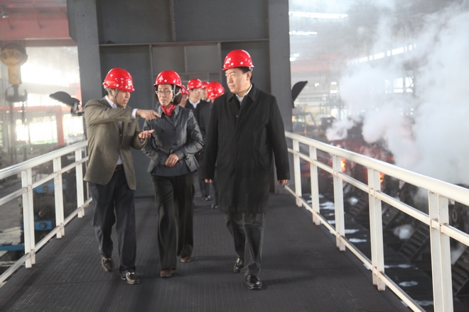 3月28日,遼寧省副省長劉強到公司視察,鞍山市代市長吳忠瓊等相關(guān)領(lǐng)導(dǎo)陪同,總經(jīng)理張鐵漢匯報生產(chǎn)經(jīng)營情況。